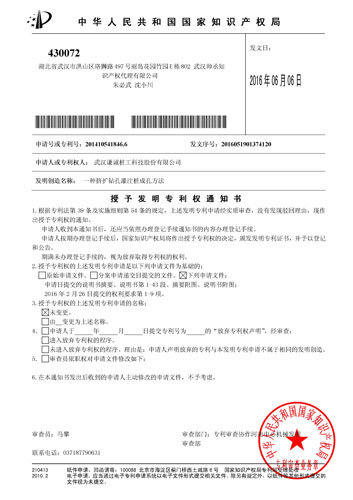 【简讯】集团公司谦诚科技开发的“一种挤扩钻孔灌注成孔方法”发明专利6月6日被国家知识产权局授予发明专利,专利证书待办理登记缴费手续后即可颁证。 ...
