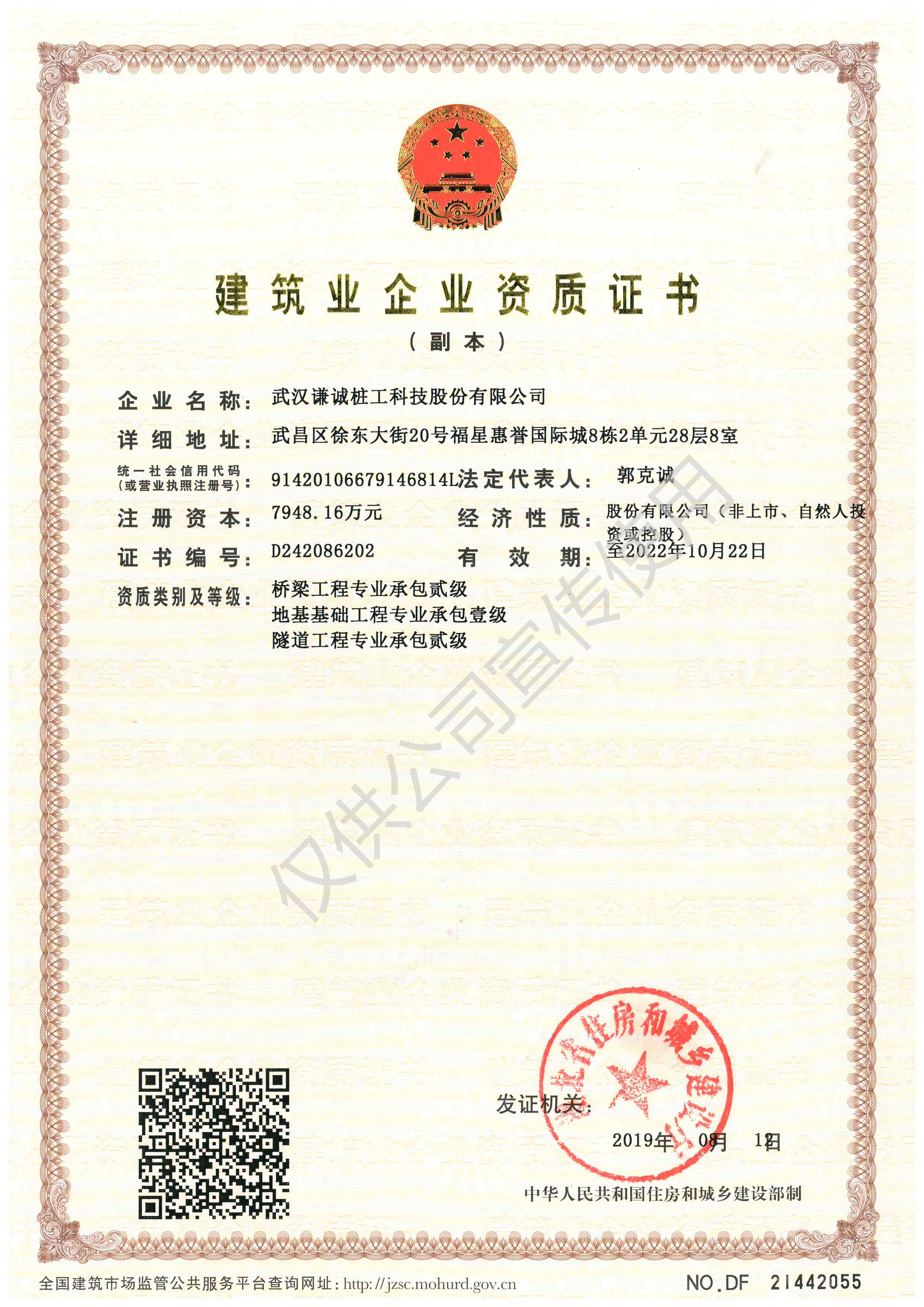 上一篇: 2019年度AAA证书武汉建筑业信用企业等级证书(2019-10-2021-9)