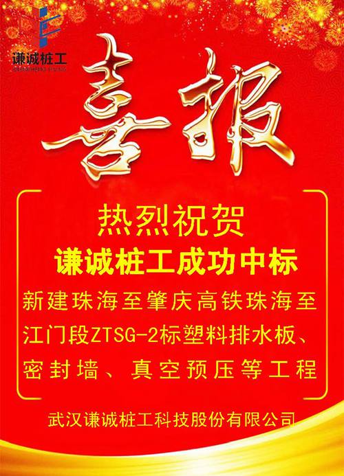 中标喜报:谦诚桩工成功中标珠肇高铁ZJSG-2标塑料排水板、密封墙、真空预压项目