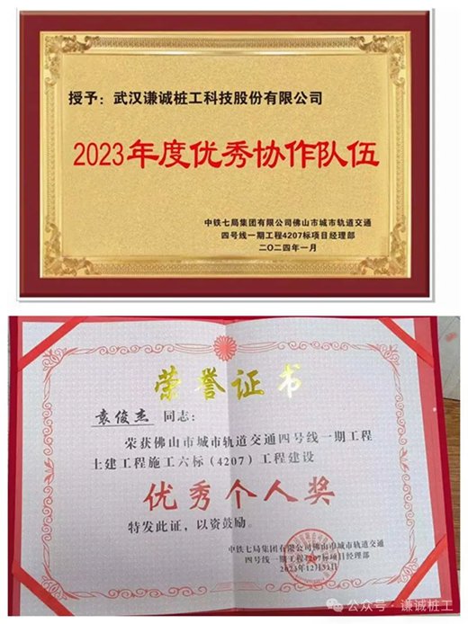 荣誉的获得,是两个项目团队在项目施工建设过程中团结一心、攻坚克难、不懈努力的结果,彰显了公司在岩土工程领域强大的专业技术实力和品牌影响力,代表了总包单位对谦诚桩工施工能力和履约水平的充分肯定与高度认可,更为公司进一步深化与各总包单位合作关系、巩固和抢占市场奠定了坚实基础。
