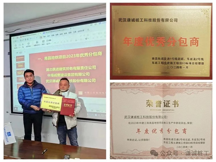 2月2日,在由总包方中建三局举办的南昌轨道交通1号线北延、东延及2号线东延工程土建施工项目年度总结表彰活动中,谦诚桩工项目团队因在施工过程中施工进度快、质量管控好、安全文明标准高,在多家分包单位中脱颖而出,为公司争得“2023年度优秀分包商”荣誉。这也是公司继芳白城际八工区人和项目、武汉机场河CSO调蓄池项目、武汉常青公园地下调蓄池项目后,再一次在与中建三局的合作中获得肯定与表彰。